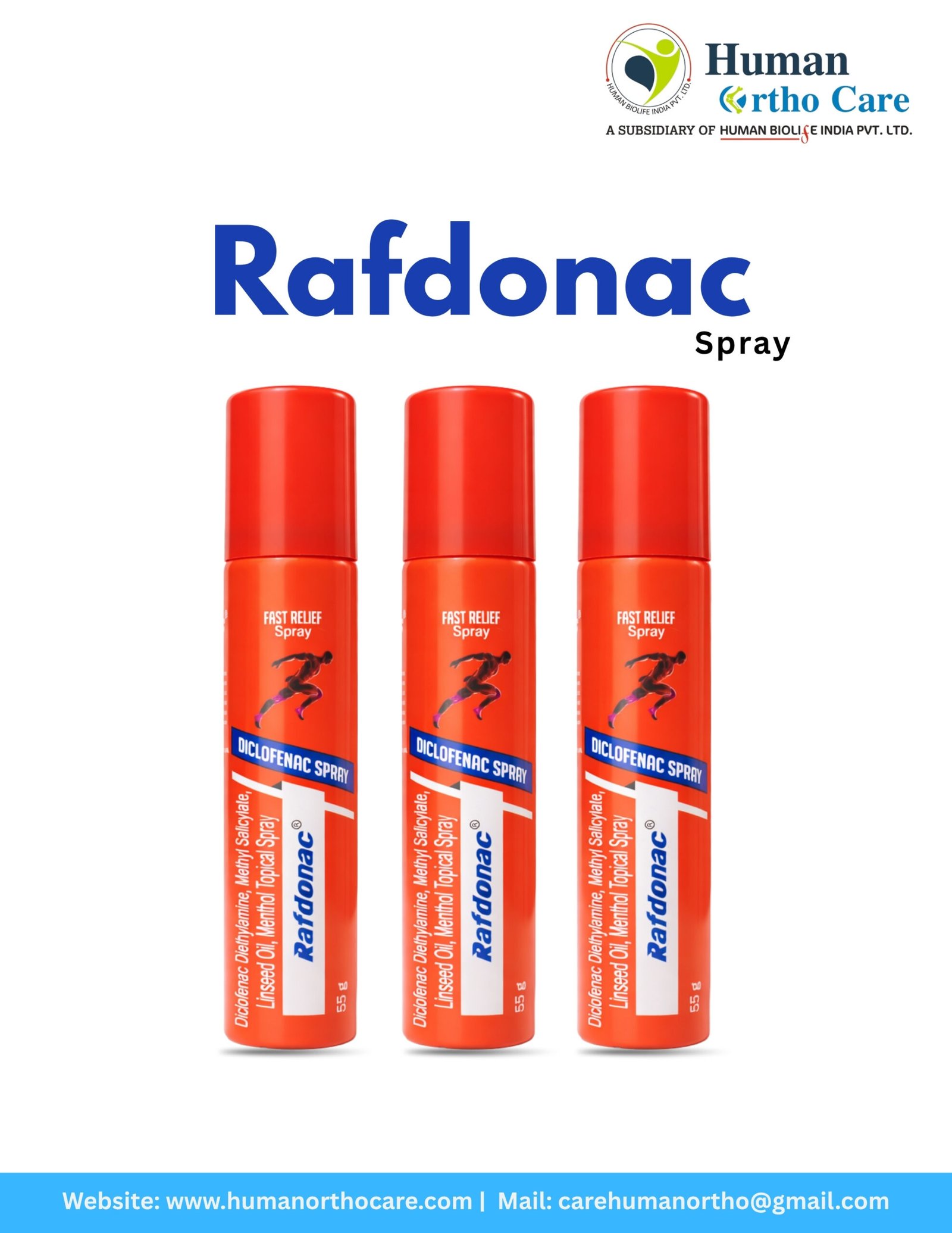 Rafdonac Spray is a high-performance topical analgesic designed for rapid relief from acute musculoskeletal pain. It combines the powerful anti-inflammatory action of Diclofenac with the deep-penetrating properties of Linseed Oil and the cooling sensation of Menthol. This spray is specifically formulated to target pain at its source, making it an ideal choice for sports injuries, sprains, strains, and lower back pain. The non-greasy, quick-absorb formula ensures that the active ingredients penetrate deep into the muscle tissues and joints, reducing inflammation and swelling almost instantly. Whether it’s a sudden muscle pull or chronic joint stiffness, Rafdonac provides a convenient, touch-free application that allows for maximum mobility throughout the day. It is a must-have for athletes and individuals with active lifestyles who require fast-acting recovery solutions without the hassle of heavy creams or ointments.